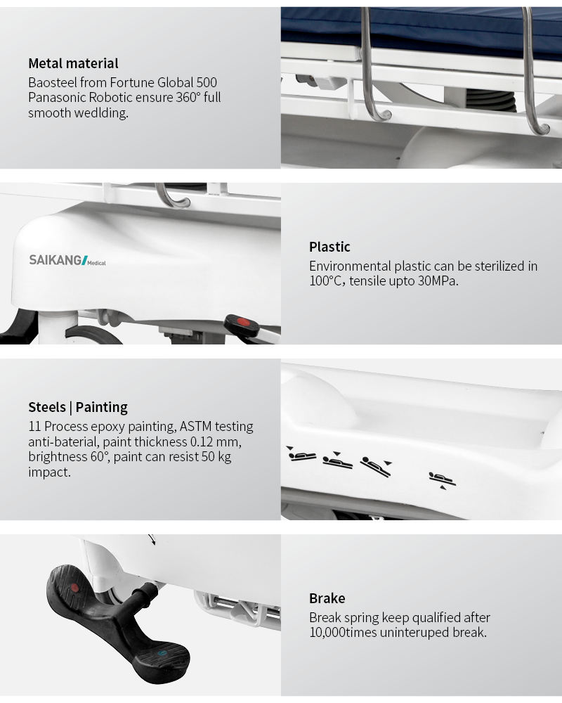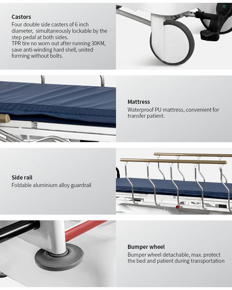 * Bumper wheel detachable, max. protect the bed and patient during transportation